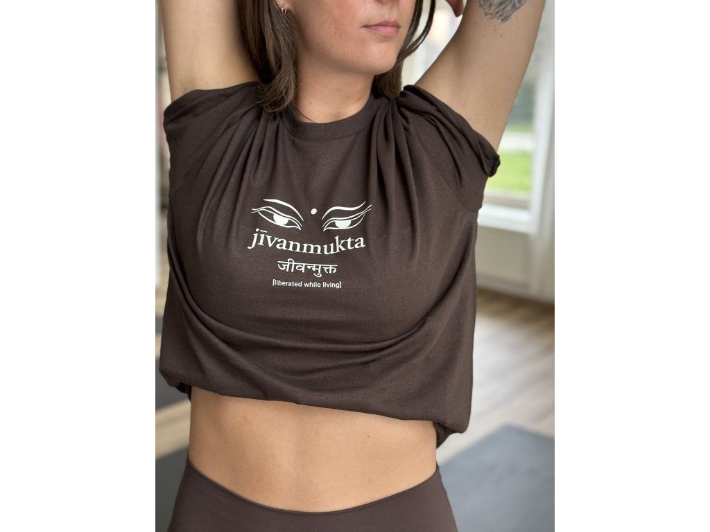 Tričko „Jivanmukta“ není jen kus oblečení, ale připomínka vnitřní svobody – stavu, kdy jsi sám sebou bez potřeby něco dokazovat. Minimalistický design, který mluví tiše, ale přesně. Vyrobené ze 100% organické bio bavlny, takže je přirozeně příjemné na těle a zároveň šetrné k planetě. Volnější unisex střih s lehce spadlými rameny ti dá prostor dýchat – ať už jsi na józe, nebo ve městě.