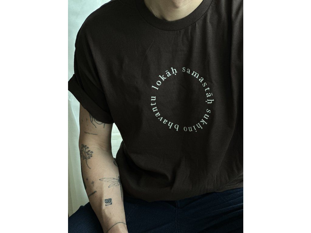 Tričko s mantrou „Lokah Samastah Sukhino Bhavantu“ nese jednoduché, ale silné poselství – nechť jsou všechny bytosti šťastné a svobodné. Jemný design s velkým přesahem.